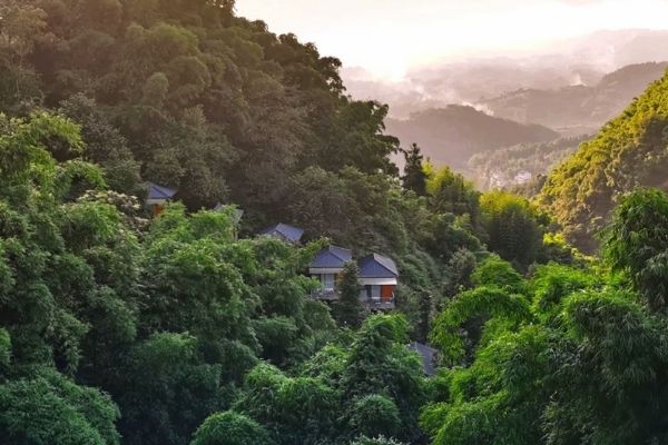 云峰茶谷位于大竹县铜锣山中段团坝镇,因云峰寨而得名。万余亩茶海依山就势,绵延起伏,郁郁葱葱。茶谷深处流水潺潺、鸟鸣啾啾,宛若仙境。川东白茶海,大竹康养地。