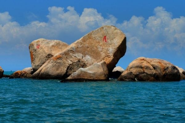 天涯海角:三亚的天涯海角位于三亚湾西端,海滩上耸立着许多形态各异的岩石,很多岩石上刻着古今名人留下的字迹。最有名的是刻有“天涯”和“海角”的两块巨石,它们一直被视为爱情的象征,也是三亚的标志性景观之一。还有其他有名的石刻“南天一柱”和“日月石”,南天一柱又被称为“财富石”,日月石象征爱情。