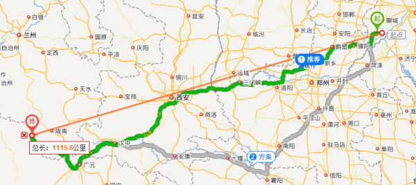 途经:连霍高速、京昆高速;行程大约1439.3公里,需要19个小时