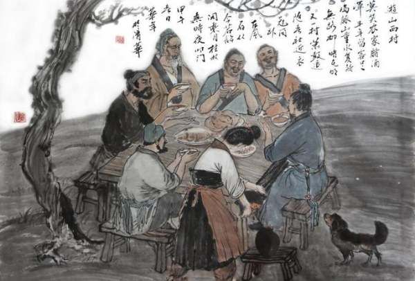不要笑农家腊月里酿的酒浑浊不醇厚,丰收的年景农家待客菜肴非常丰盛。