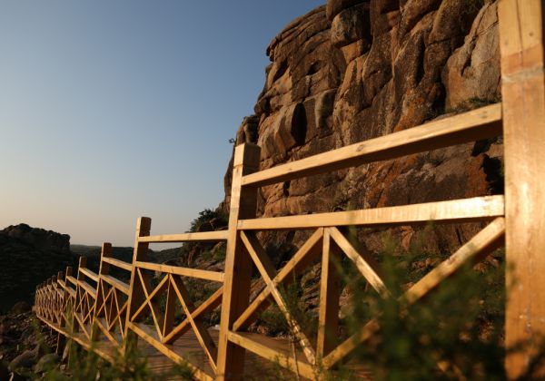 一、梅力更自然生态风景区梅力更(蒙语“聪慧”意)自然生态风景区依偎在阴山山脉乌拉山南麓,包头西30公里(九路车终点站),南眺九曲黄河,西接巴彦淖尔盟。是以众多的巨型球状的花岗岩高山、瀑布和植物景观为主的自然风景区。景区内有梅力更沟、石包克图沟、西沟等奇峻峡谷,山体雄伟奇特、深幽险峭,主峰大桦背海拔2324米。景区保护面积56.7平方公里,是国家AAAA级旅游风景区和自治区级自然保护区。