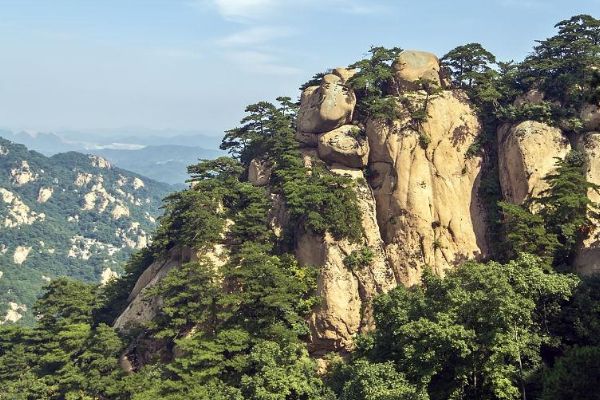 千山风景区,素有东北明珠之称,海拔708.3米。观音峰又称为仙人台,是千山的最高峰,五佛顶是第二高峰,而千山海拔最高的道观普安观,就在五佛顶南侧悬崖上。因为一路人文加自然景观众多,风景秀丽,所以也是最受欢迎的登山路线。尤其是夏季时节,森林茂密非常阴凉,是爬山避暑的好地方,山风轻轻吹过,可俯瞰漫山景色。