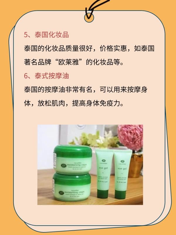 泰国的按摩油非常有名,可以用来按摩身体,放松肌肉,提高身体免疫力。