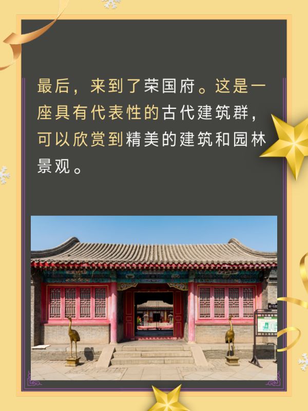 最后,我们来到了荣国府。这是一座具有代表性的古代建筑群,再现了封建社会的历史风貌。在这里漫步,可以欣赏到精美的建筑和园林景观,感受到古代文化的底蕴。