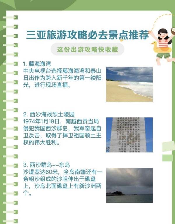 来到美丽的三亚,首先要说的是,这里真的太适合度假了!阳光、沙滩、大海,得天独厚的自然风光让人流连忘返。这次,我要给大家推荐几个三亚旅游必去的景点,这些地方不仅仅是看风景,更多的是体验一种生活态度和方式。