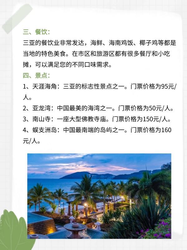 总之,三亚是一个非常适合度假和旅行的城市,这里有着美丽的自然风光和丰富的文化氛围。如果你还没有来过三亚,不妨抽空来一次,相信你一定会爱上这里的!