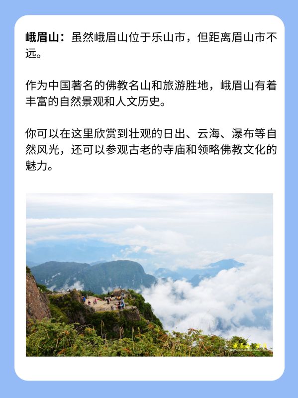 峨眉山:虽然峨眉山位于乐山市,但距离眉山市不远。