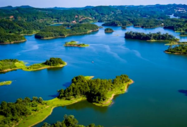 被誉为“川西第一海”的千岛之湖黑龙滩,位于眉山市仁寿县,这里水质澄澈,风景优美,宛如一幅碧波画卷铺陈开来。