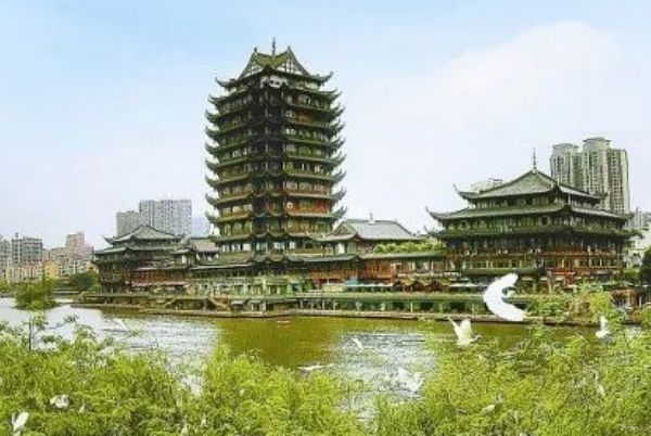 远景楼位于眉山市东坡区东坡湖畔,主楼共13层,高80米,凭栏远眺,可登高望远,欣赏东坡湖全景,领略岷江河风光,尽享“登临览观之乐,山川风物之美”意境。