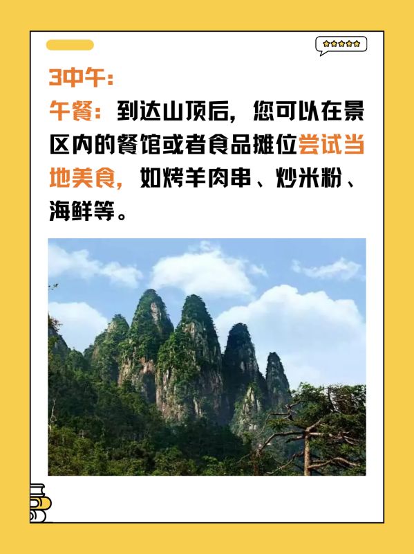 午餐:在景区内的餐馆或者食品摊位尝试当地美食。