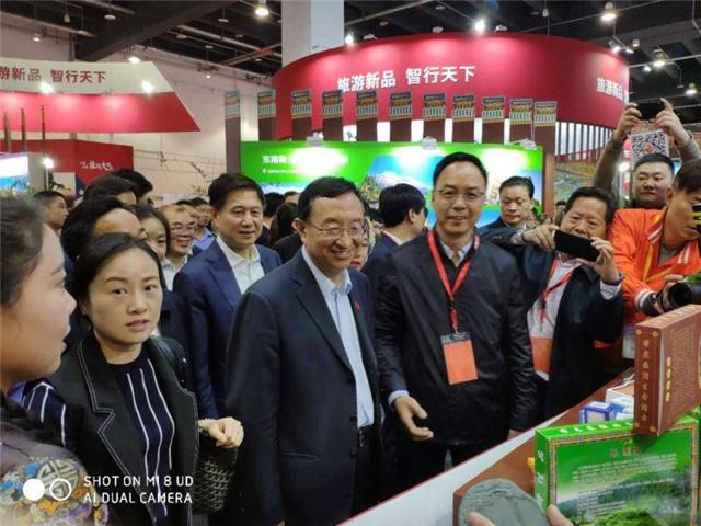 图为文化和旅游部雒树刚部长巡视我省参展商品