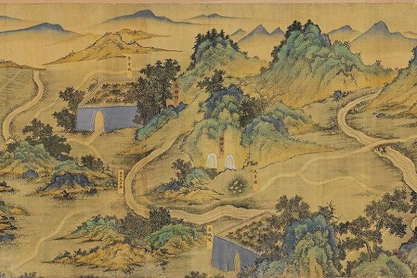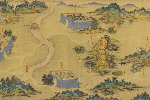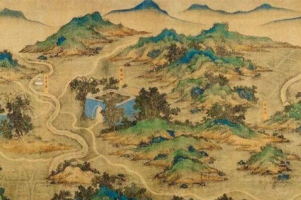 《丝路山水地图》又名《蒙古山水地图》,该画绘于绢本之上,幅宽0.59米、全长30.12米,是一幅绘制于明代中后期的、应为内府使用的青绿山水手卷,作品描绘了从甘肃嘉峪关到中东麦加数千公里线路的主要城池和山川地貌,堪称中世纪世界地图。