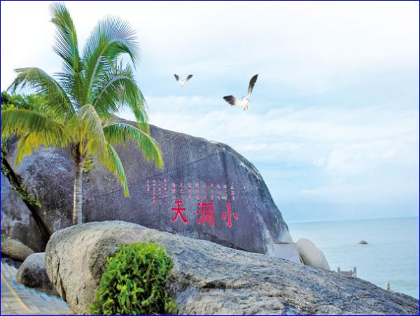 大小洞天旅游区,原名海山奇观风景区,古称鳌山大小洞天,位于海南省三亚市区以西40公里的南山西南隅,总面积为22.5平方公里,景区已有800多年历史,是著名的道教文化风景区。大小洞天风景区以其秀丽的海景、山景和石景号称琼崖第一山水名胜。