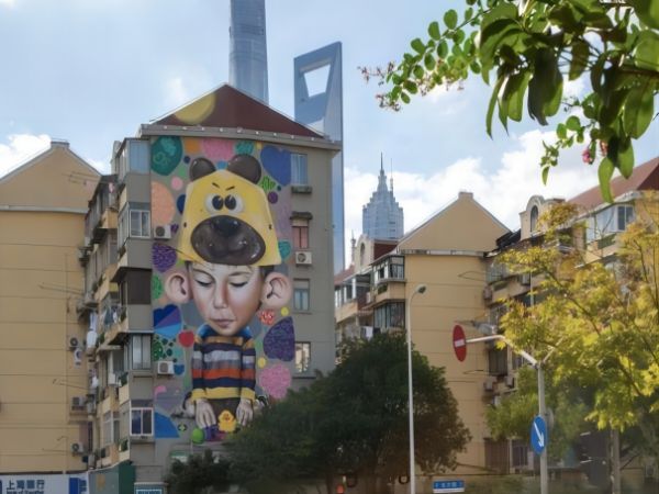 梅园街区路线虽然只有几百米,但两边不仅各色店铺林立,还有很多新近建成的供人们交流、活动的场所。这条线路可以从福山路的陆家嘴人文展示馆出发,经过福山菜场、福山社区剧场(福艺坊),沿着乳山路往东,在东方路乳山路路口的老公房外墙上,会遇见一幅《为爱上色》的巨幅墙绘。