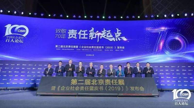 2019年11月17日,“第二届北京责任展暨《企业社会责任蓝皮书(2019)》发布会”在京召开,会议发布《企业社会责任蓝皮书(2019)》、《企业社会责任基础教材(第二版)》等成果,并召开社会价值论坛、企业扶贫论坛2场主题论坛,对企业的社会责任进行立体化、多角度展示。国务院扶贫办、国务院国资委、优秀企业代表、主流媒体等各方嘉宾共300余人出席本次展会。