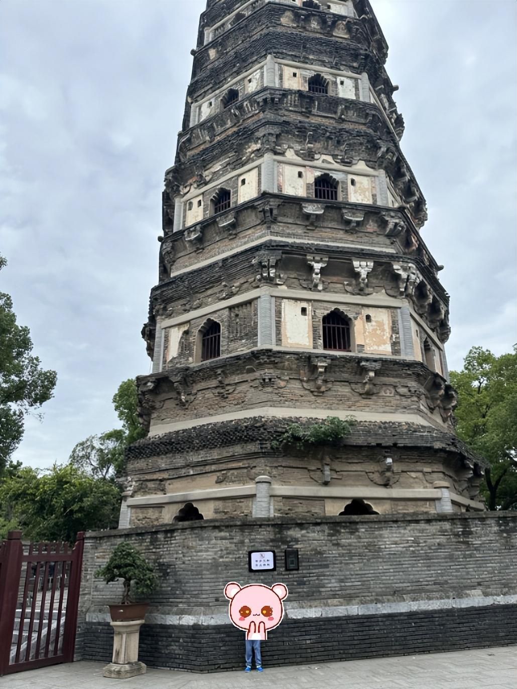 塔高七层,不准许上去,周围有栏杆阻挡。若是可以,真想去虎丘塔内部看看。