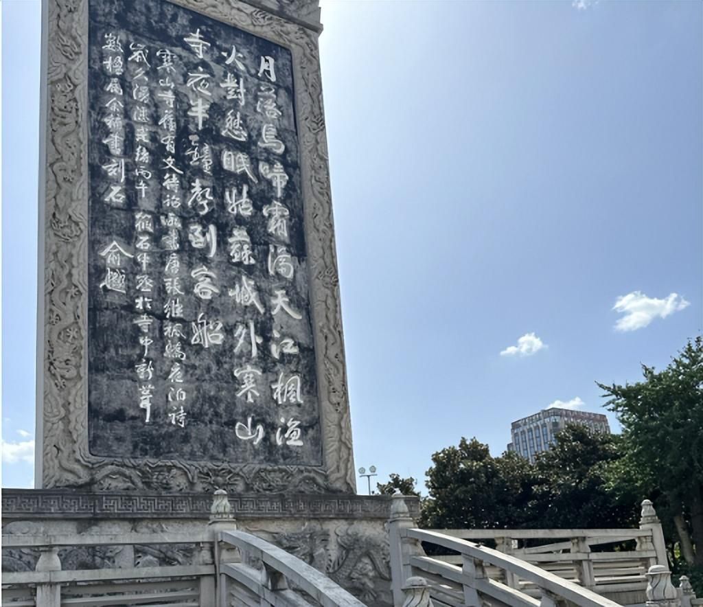 公园里也有《枫桥夜泊的》石刻碑文,虽数量不如寒山寺,但比寒山寺里的更壮观。