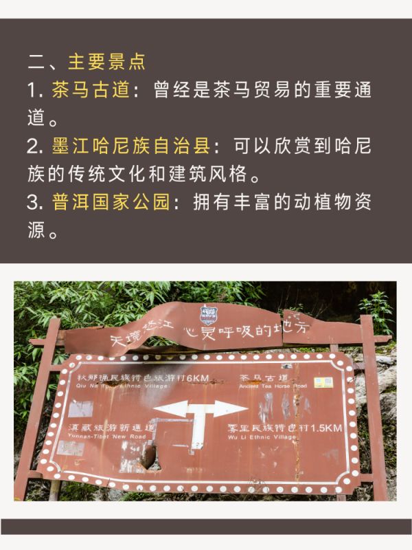 5.茶马古道:茶马古道是一个古老的贸易路线,也是普洱旅游的重点,可以选择穿越茶马古道去探索普洱的自然风景和文化。