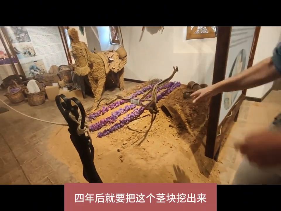 这个时候需要大量的人工采摘,如果不及时采摘就会腐烂,这样一年的收成就没有了。采下来以后要马上进行烘烤,把它们烘干,干燥后脱水70%,只剩下了30%。一公斤的干的藏红花需要25万到30万支花径,所以藏红花有植物黄金之称。过去是把多余的藏红花藏在箱子里以备不时之需,或者是当作女孩子的嫁妆。
