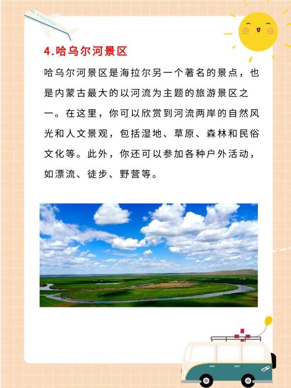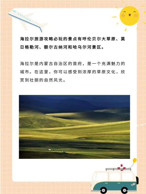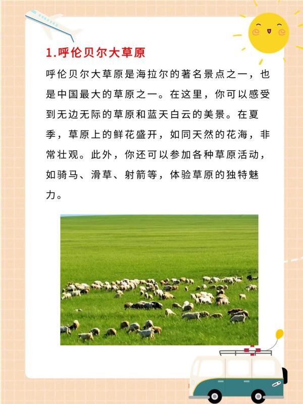 这个我知道!对于爱旅游的我来说,海拉尔是一个让人流连忘返的地方,当时去的时候收集了海拉尔一些必去的景点资料。现在我把海拉尔十大必去景点的资料分享给需要的小伙伴们~