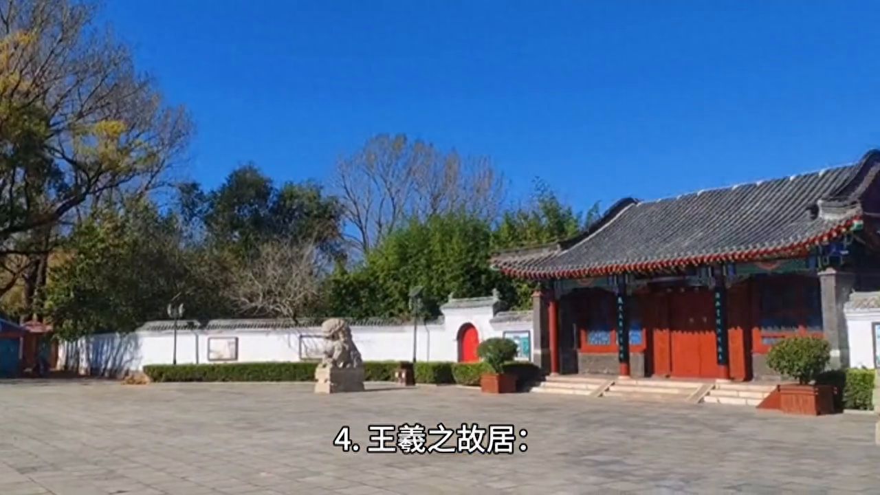 ·4.王羲之故居:书圣王羲之的故居是一个历史文化旅游景点,可以了解到王羲之的生平和书法成就。