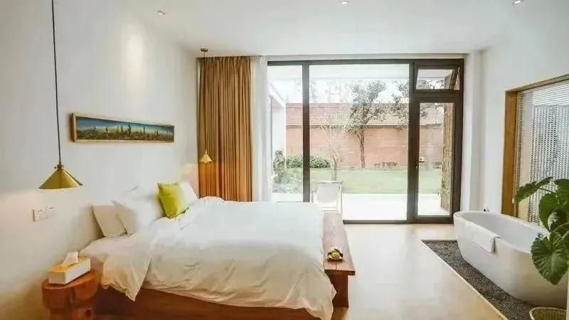 小院共有5间客房,大大的落地窗外一步一景。细看之下,每间客房都有不同的内饰及格调,还配有让人心生欢喜的鲜花、绿植以及复古音箱。