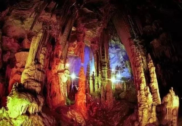 京东大溶洞内沉积有石笋、石柱、石幔、石花、石塔、石珍珠、石人、石兽等类型的景观,在五彩灯光的照射下,绚丽多姿。