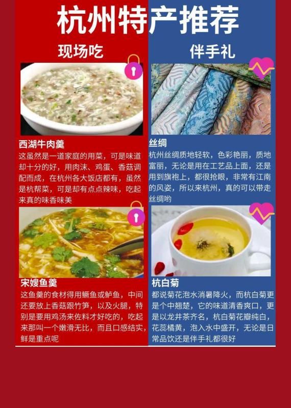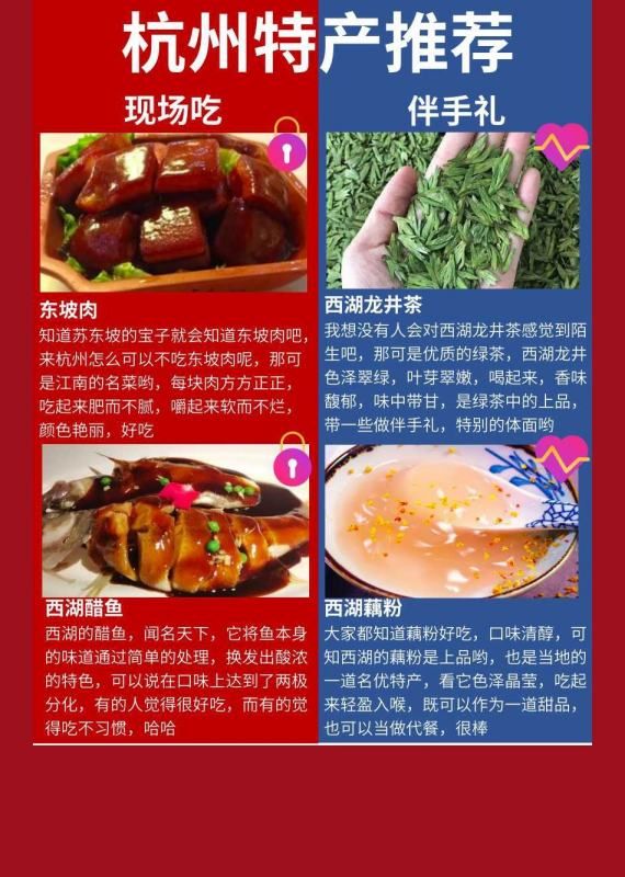 以上就是杭州的特产。每种美食都有自己独特的风味和历史传承,来到杭州一定不要错过这些美味佳肴,一定会让你留下非常美好的回忆。