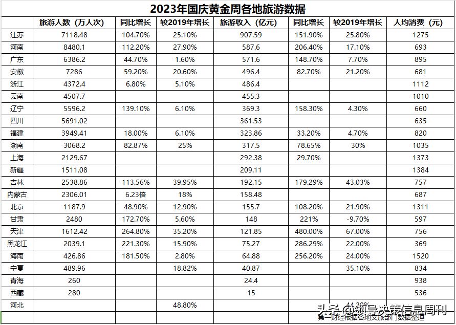 国庆黄金周旅游数据集锦(国庆历年旅游数据)