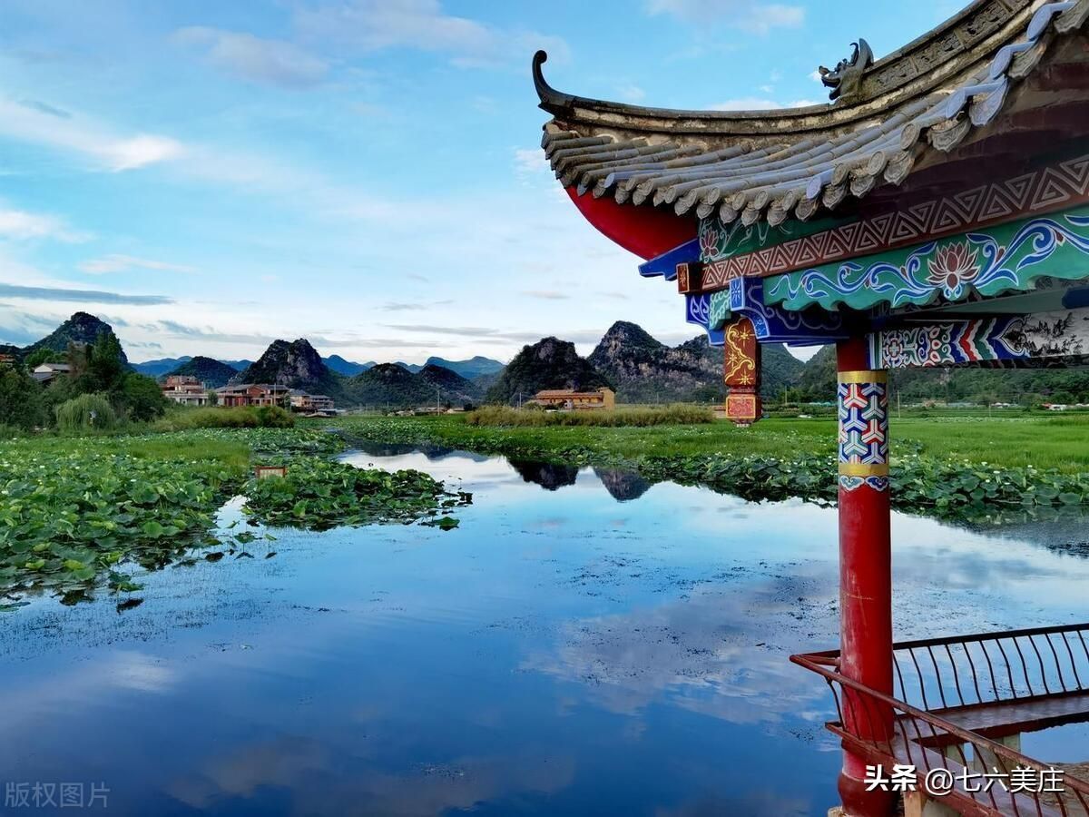 普者黑是文山州丘北县境内的一个风景区,被誉为“世间罕见、中国独一无二的喀斯特山水田园风光”。这里有碧波荡漾的湖泊,有峰林耸立的山峦,还有独特的彝族文化和壮丽的日出日落。你可以乘坐小船在湖上漫游,感受山水之间的和谐与宁静;也可以登上山顶,俯瞰整个景区的壮美景色。