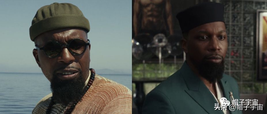 莱昂内尔·图桑,新能源公司Alpha的首席科学家,他是迈尔斯·布朗的下级。可能也许是黑皮肤的缘故,所以图桑并不怕晒。选择了无檐小帽。白天戴的帽子像地主帽或者老北京贝勒帽。晚宴戴了另一款无檐帽。因为蓄了胡子,头顶小帽和胡须有了很好get到个性化平衡点。这两种帽子属于个性化的帽款,并不百搭建议慎入。