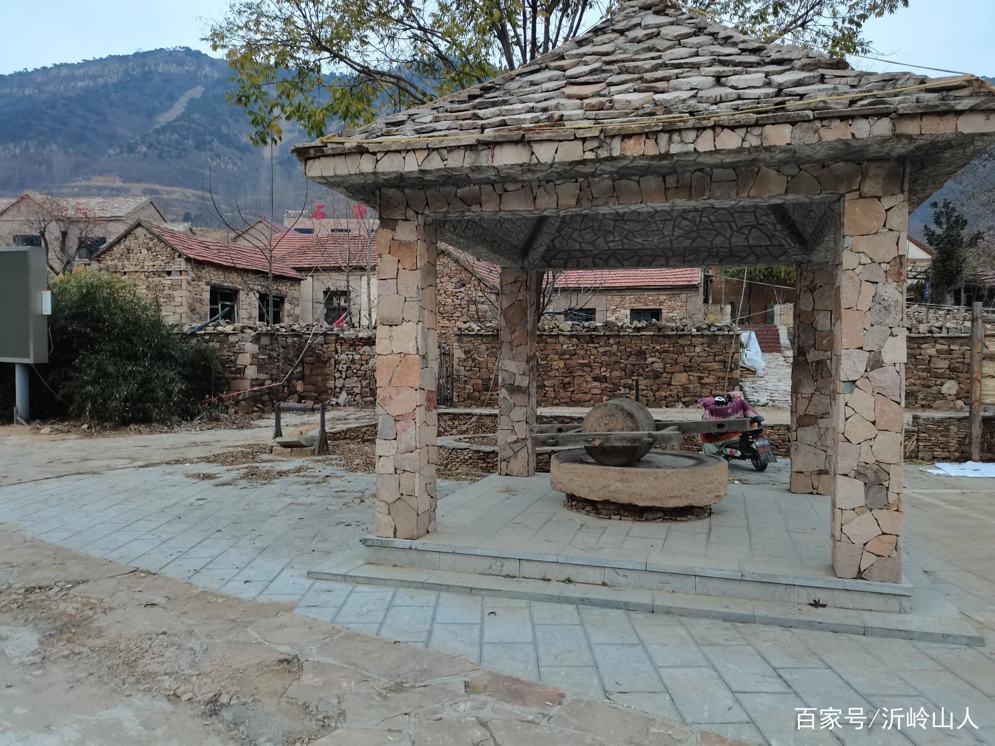 还未进入小山村,就看到小河清澈的流水,从上游流淌下来,给这处小山村增添许多欢乐气息,沿途一路上行便到达村头。这里的院落都是原生态,丝毫没有任何掩饰,一座座民房错落有致排列,村里的古井显然很长时间不用了,已经被封死了。石碾已成为沂蒙山区村落的标志了,几乎每处村落都会有这种石碾,毕竟是当地老乡最有用途的生活用具,随着时代发展都被闲置起来了。