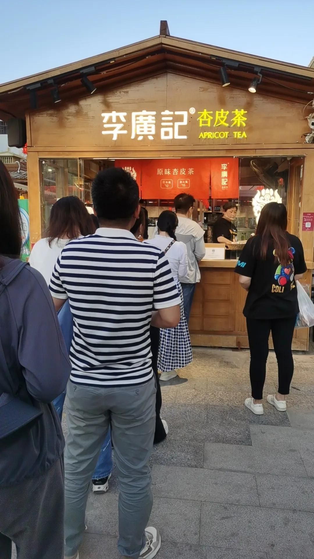 到了市区,晚上可以去夜市转转,有好多小吃,搜索沙洲夜市商业街就可以找到了。先不说别的,夜市前边有个李广记杏皮茶特别好,有好多人排队在那买。排队买了两个,味道确实很不错。李广杏是那的特产。