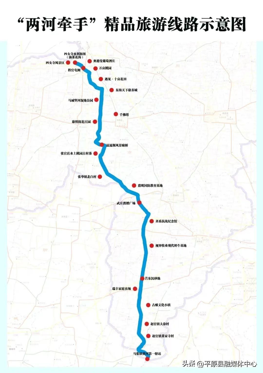 该线路全长130公里,线路北起大运河四女寺水利枢纽,南至齐河潘庄引黄闸,途经5个县市区,共打造23个游玩体验节点,融合乡村游、工业游、亲子游、文物游、红色游等多种业态,串联沿线核心文旅资源。