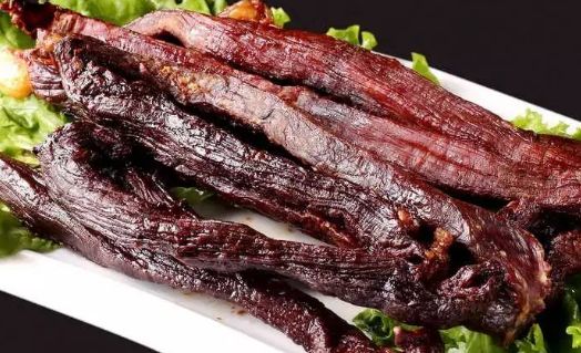 阆中张飞牛肉:是四川阆中牛肉加工厂的传统美味之一,色、香、味俱佳,这种干牛肉早在40年代就获得成都工业协会优质产品银奖。因肉干而不硬,润而不软,外黑内红,故称“张飞牛肉”。