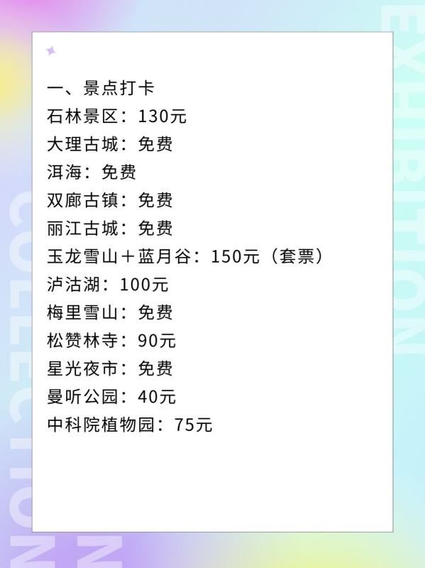 3. 昆明-玉龙雪山-蓝月谷-香格里拉:这条线路适合喜欢户外运动的游客。您可以从昆明出发,先游览玉龙雪山和蓝月谷,然后前往香格里拉感受藏族文化。