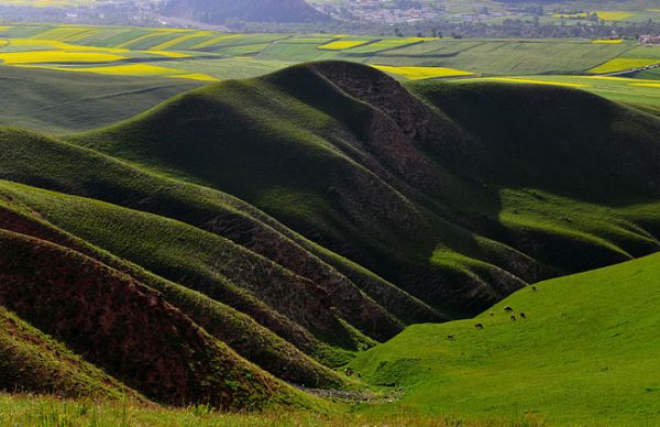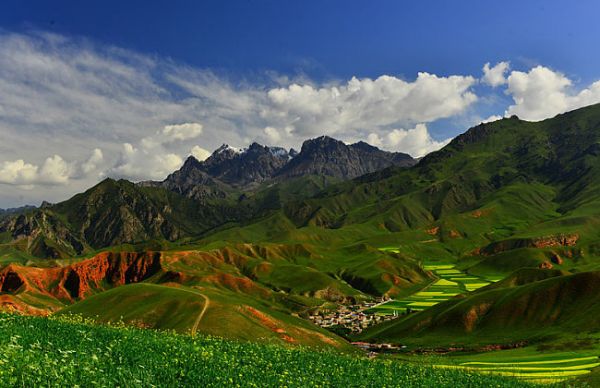 在绵延起伏的祁连山中段,有一条长约30公里的山峡通道,拦腰切断祁连山,贯通甘、青两省,它就是被古人称为大斗拔谷的险关要隘扁都口。扁都口为藏语扁麻多之音变,意为金露梅。扁都口是古代丝绸之路的南路,夏季的时候漫山遍野都是油菜花,处处洋溢着清新的花香。金黄色的油菜花田、散落的白色毡房,蓝天白云下,呈现一幅生机盎然、幸福安乐的美好图卷。7月正是去扁都口旅游的zui好时节。