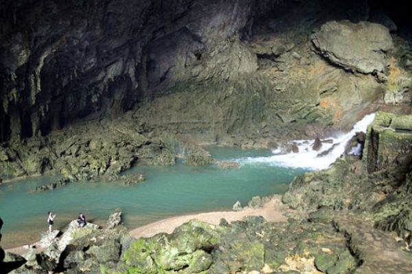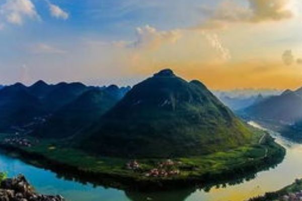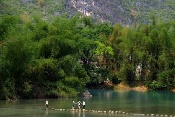 是深藏在贵州、广西两省万山丛中的一块尚未雕琢的翡翠。这块“翡翠”不但气魄宏伟,而且景色壮观秀丽。一座座青山屹立水中,苍翠葱绿,密密丛丛,简直就是一个和谐透明的翡翠般的绿色世界。