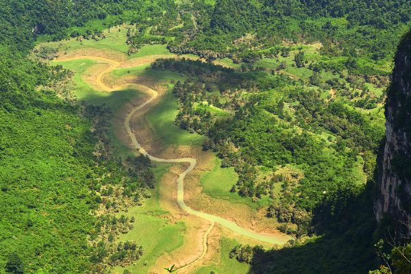 3、三叠纪贵州滩,三叠纪大贵州滩距罗甸县城西北部23公里处的板庚村,方圆十数平方公里范围的高山峻岭、田园、小溪,由地下湖泊和地上的喀斯特地貌组成的。