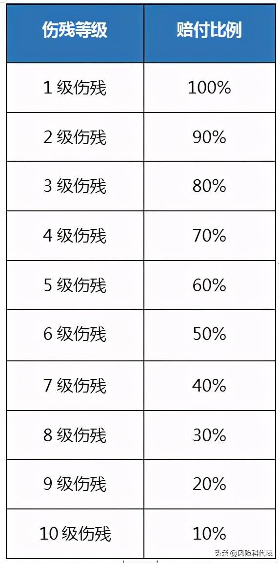 由于意外伤害造成的伤残,须由伤残鉴定部门根据中国保险行业协会和中国法医学会共同颁布的《人身保险伤残等级评定标准》鉴定伤残的级别,按照伤残等级用身故保险金乘以不同的比例赔付给被保险人。