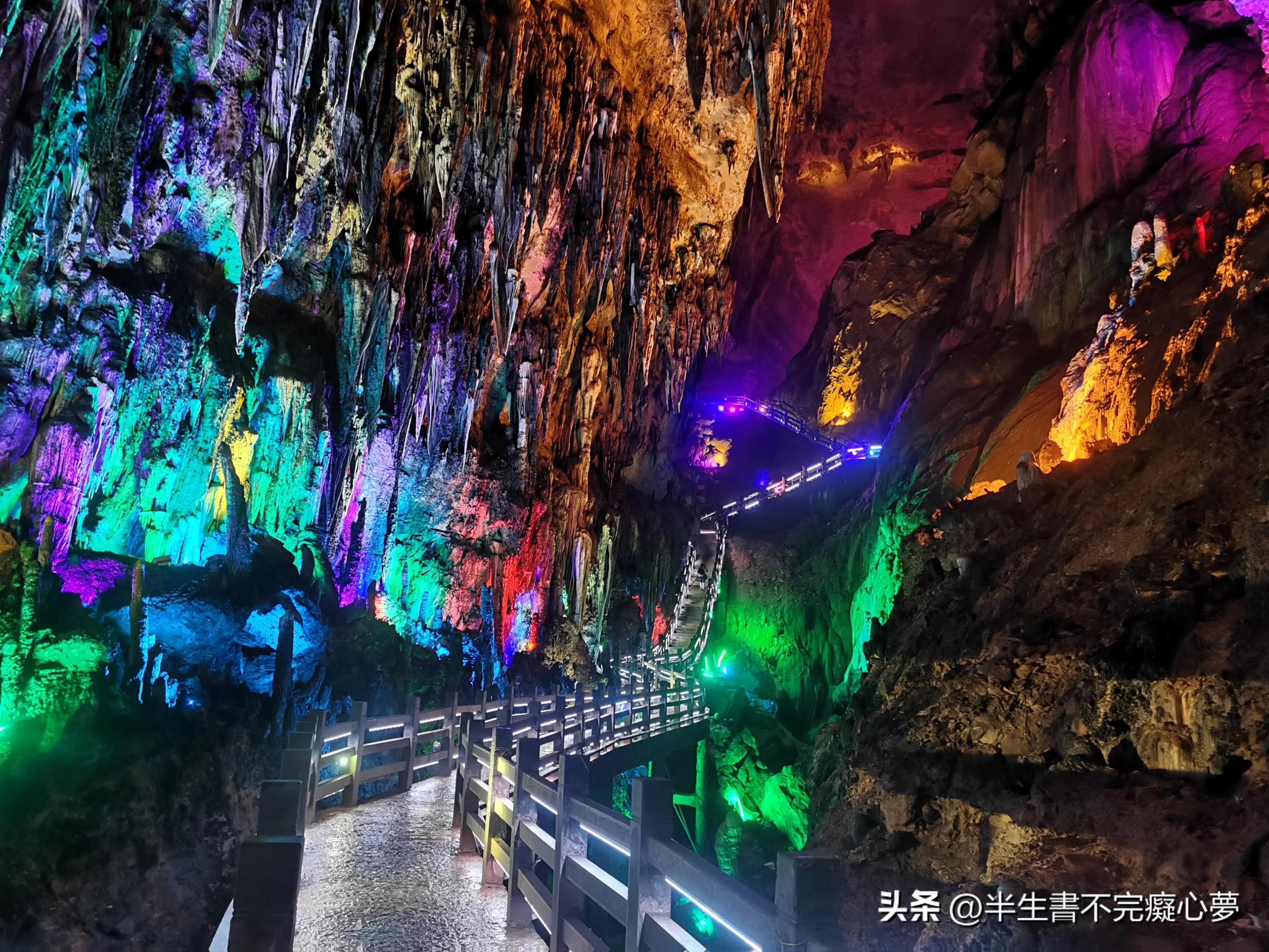 最后一站是芙蓉洞,这是一个大型石灰岩洞穴,内部布满了各种钟乳石、石笋和石花。在芙蓉洞内,你可以欣赏到各种奇妙的景观,如“玉柱擎天”、“瑶池仙境”等,让你仿佛进入了一个神秘的地下宫殿。
