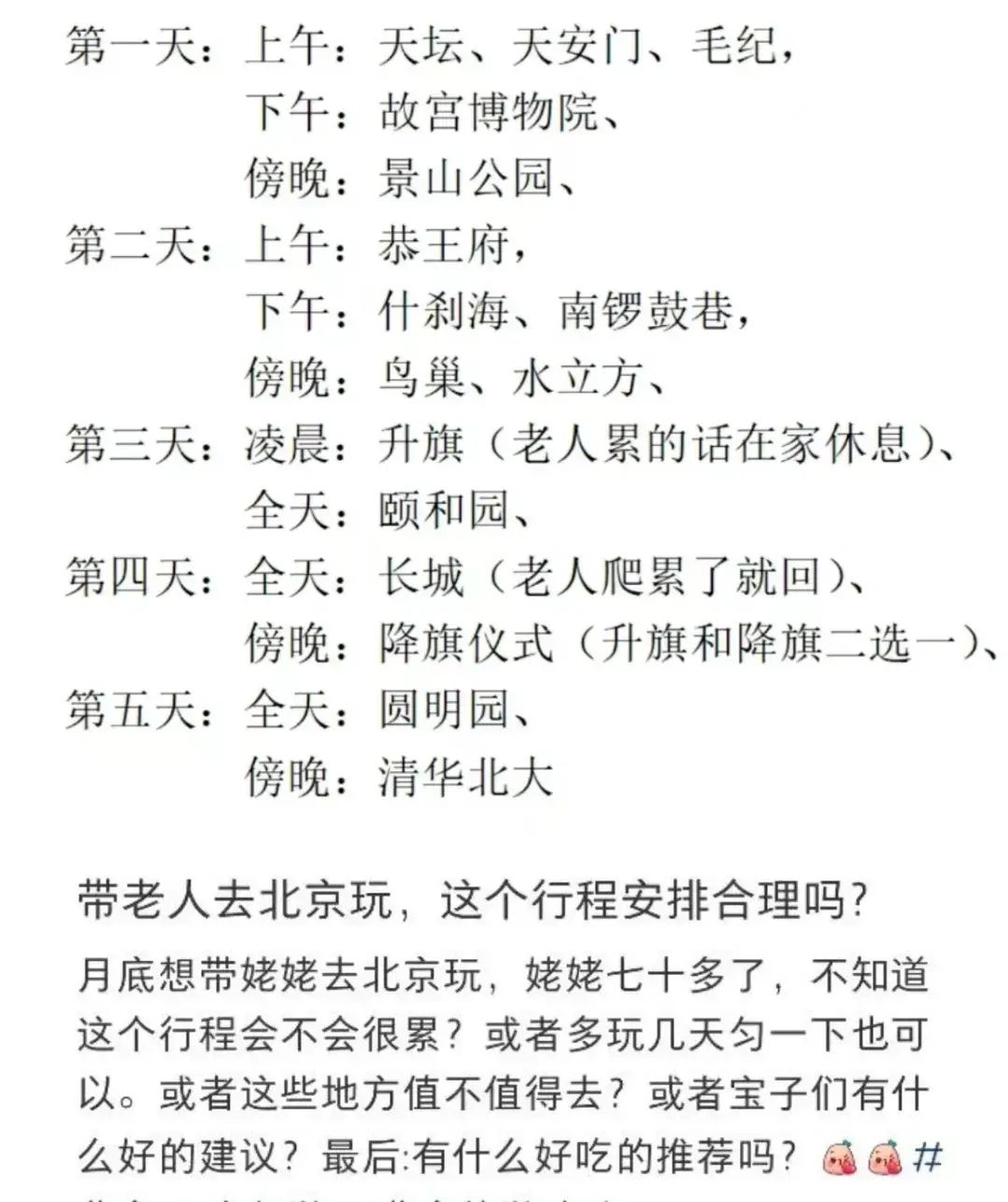 最后,我劝那些想带爷爷奶奶来北京的年轻人,可得好好琢磨琢磨,别光图自己开心了,也替老人家想想。