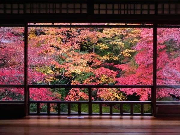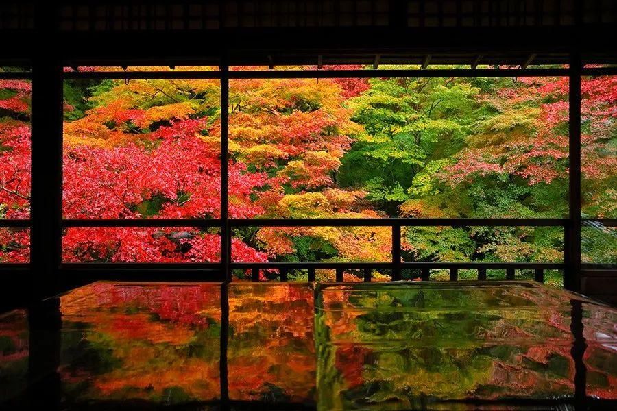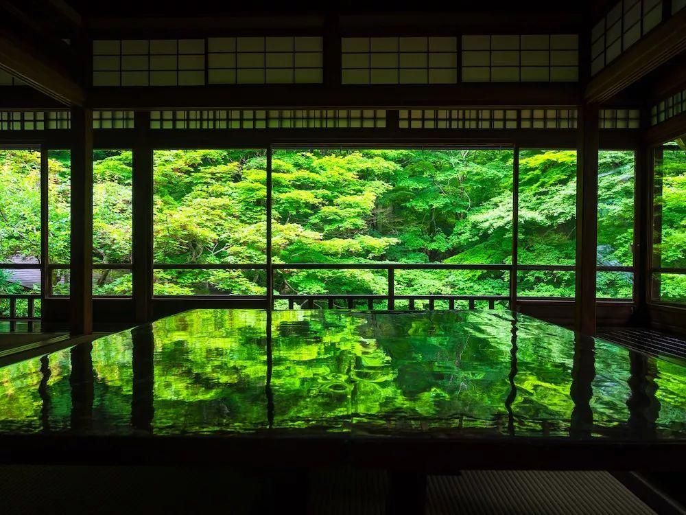 除了传统的日式庭院造景,瑠璃光院最令人讚叹的景色是书院内的窗景,满眼尽是一片黄红交错的美景。除了赏枫,旅客还可以在琉璃光院内抄写经文祈福。