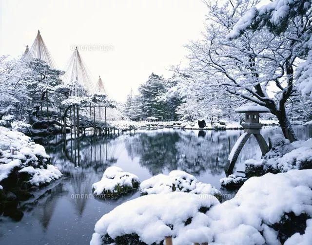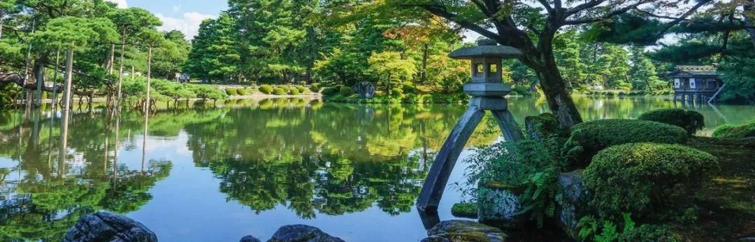 夏日的兼六园充满盎然的绿意,在暑气中于园中漫步游览,在流泉、池湖和碧绿翠景包围下,心旷神怡。秋天自然是满园枫红,让人目不暇给。