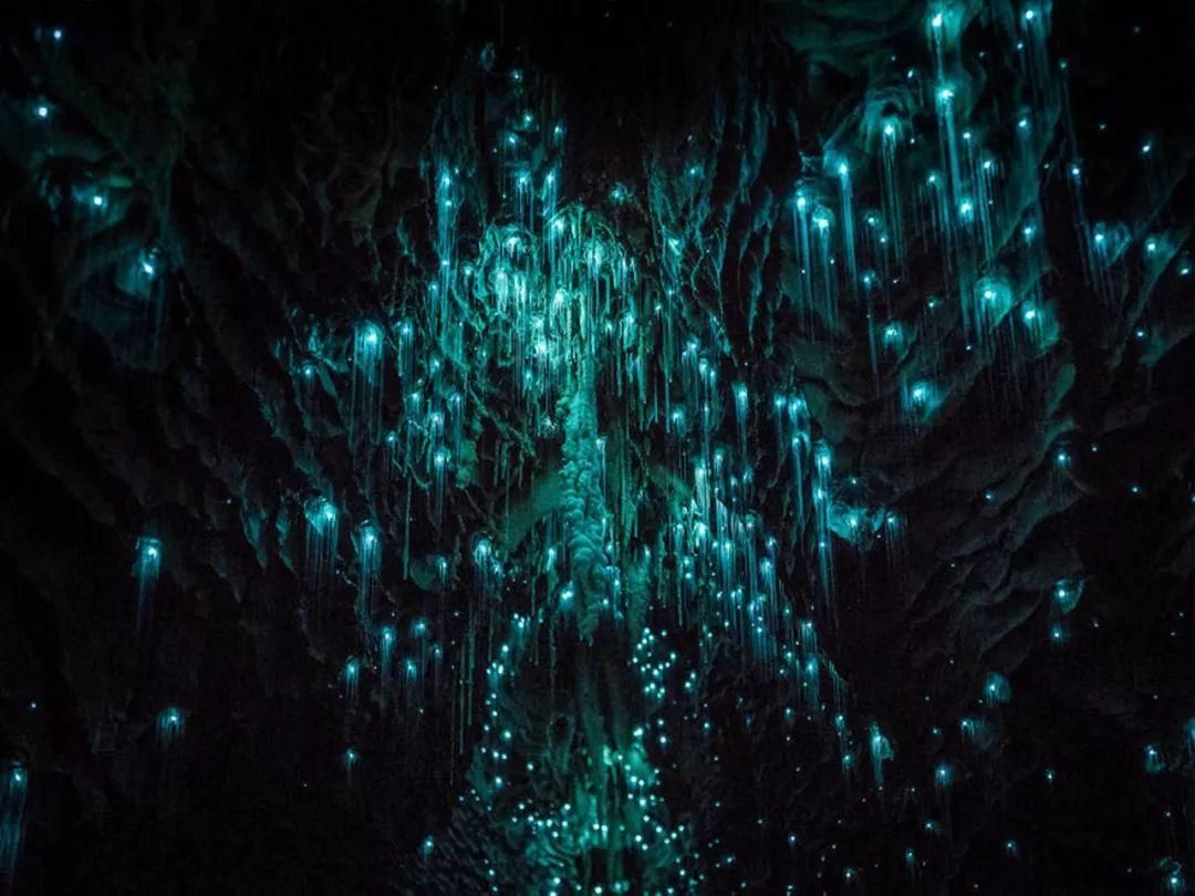 神奇的怀托摩萤火虫洞(Waitomo Glowworm Cave)被毛利人誉为世界第七大奇观。据介绍萤火虫洞是个巨大的石灰岩洞,洞穴上下均有通口,吸引许多昆虫入内繁殖。