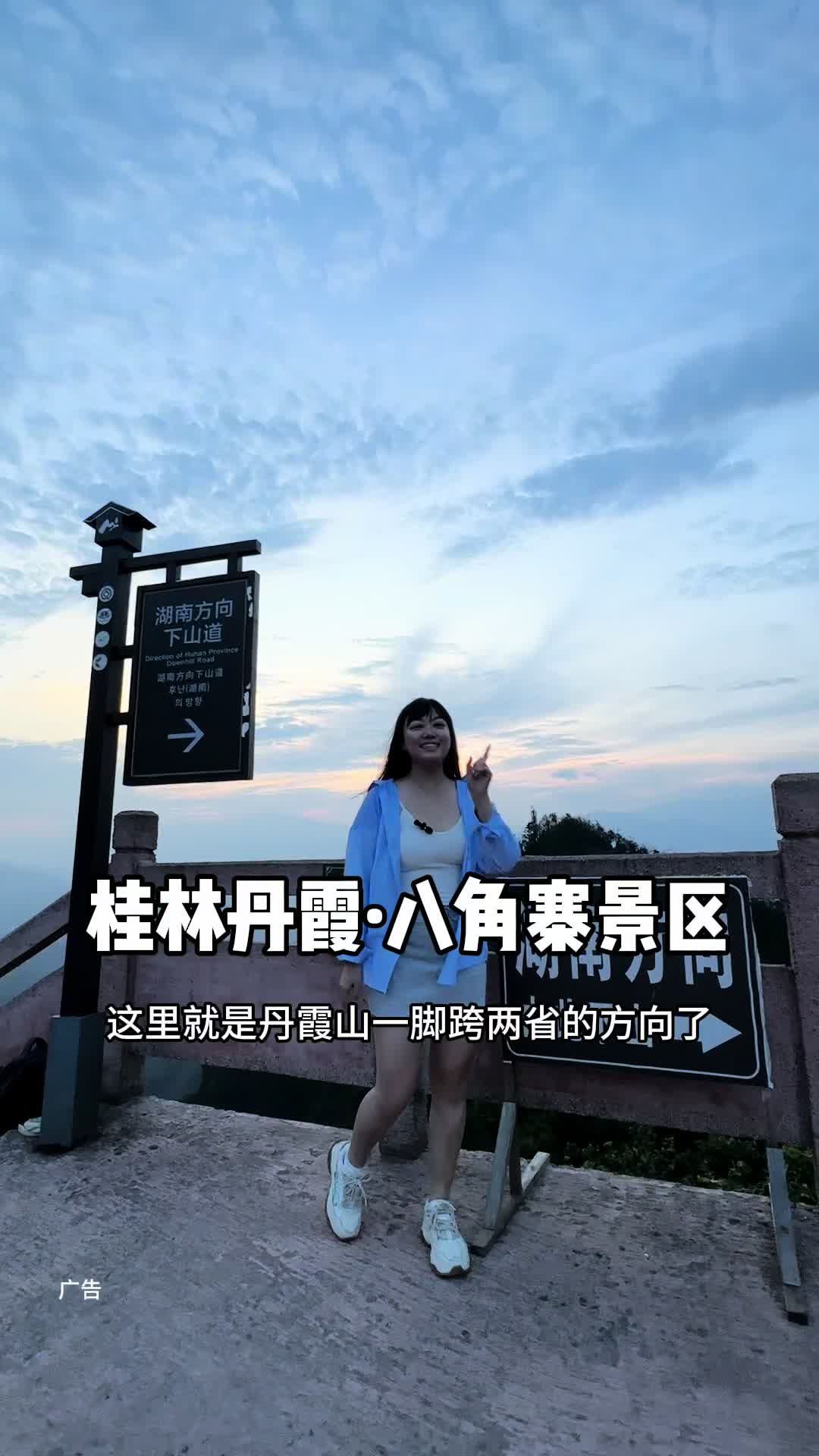 1. 这里就是丹霞山一脚跨两省的方向了,左边的方向是湖南,右边的方向是广西。敢相信眼前这个壮美的人间仙境竟是由亿万年前大自然的鬼斧神工建造的吗?如果你也和我一样第一次来桂林丹霞·八角寨景区旅游,这份保姆级的游玩攻略一定要收藏好了。