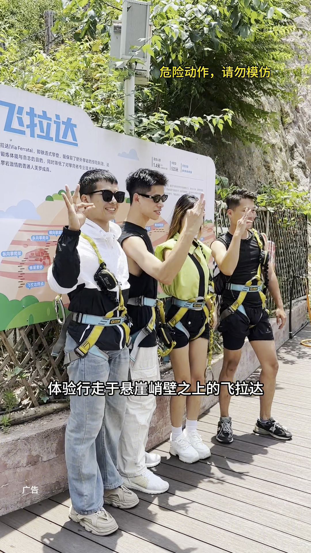 5. 第二天可以来到古木冲景区,体验行走于悬崖峭壁之上的飞拉达。520 米的长度,步步惊心,刺激又有趣。还有丛林穿越也是非常适合带娃来体验的。在古木冲景区目睹一吻千年的奇山异石,沿路而上路过相思石观景台、玻璃栈道,如此的壮观震撼绝对让你不虚此行。