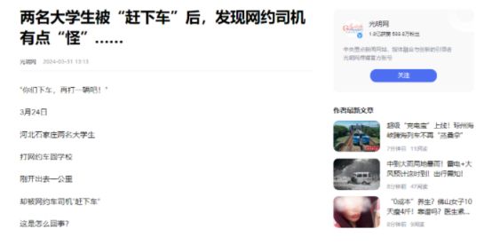 光明网2024年3月31日《两名大学生被“赶下车”后,发现网约司机有点“怪”…》