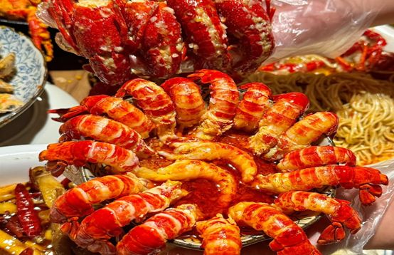凌晨1点,她走在灯火通明的大街上,本带着几分困意的她,突然被街边夜宵摊的气氛吸引,她走进夜宵摊,点了6斤口味虾,1瓶白酒。