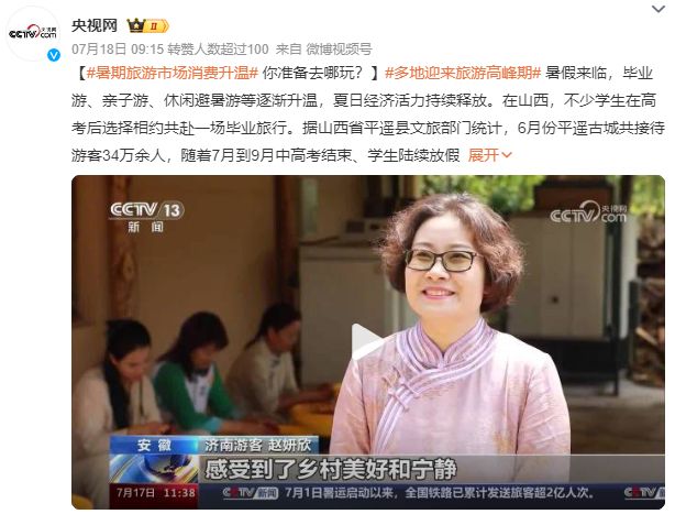 据央视网报道,今年暑期旅游市场消费升温,随着暑假的到来